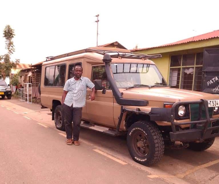 Das Bild zeigt Ibrahim Mtira aus Dar-es-Salam, Tanzania, mit seinem TOYOTA Landcruiser, den er im Januar 2020 in Arusha gekauft hat.